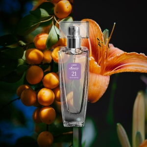 Woda perfumowana, 50 ml, nr 21 Zapach czarującej kobiecości, w którym delikatne, lekkie, pudrowe odcienie otulają lekką mgiełką, łagodząc intensywność nut kwiatowych i drzewno-korzennych. Wilgotna świeżość cytrusów i owoców tworzy naturalne, odrobinę zalotne tło. Zapach kobiety będącej obiektem pożądania. Dla młodych, pełnych życia i zmysłowych. Rodzina zapachów: kwiatowo-pudrowe Nuty głowy: grejpfrut, morela, czarna porzeczka Nuty serca: jaśmin, lilia Baza: sandałowiec, wanilia, bób tonka, piżmo