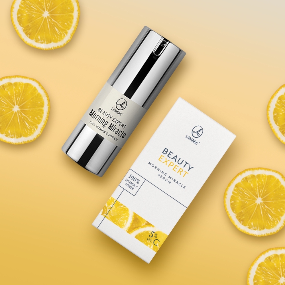 Serum Morning Miracle z witaminą C, Beauty Expert, 20 ml Dobry nastrój o poranku to klucz do udanego dnia, a odpowiednia pielęgnacja to podstawa piękna. Od czego więc zacząć dzień, aby zapewnić sobie dobry nastrój? Od skóry! Oczyszczenie i tonizacja to pierwsze co powinniśmy zrobić. Co dalej? Serum Morning Miracle! Witamina C, którą zawarliśmy w recepturze tego serum, jest przeciwutleniaczem zapobiegającym pigmentacji, a ponadto aktywuje produkcję kolagenu. Przy codziennym stosowaniu, serum pomoże utrzymać młodość skóry przez długi czas. Działanie W upalne i słoneczne dni skóra cierpi z powodu odwodnienia i promieniowania UV. Pojawia się uczucie ściągnięcia, zaczyna się łuszczenie, pojawiają się piegi i plamy starcze. Aby cieszyć się piękną skórą dłużej, rozszerz swoją codzienną pielęgnację o dodatkowe produkty, takie jak aktywne serum Morning Miracle z witaminą C i kompleksem Aquaxyl™ (połączenie glukozy pszenicznej i ksylitolu z drewna brzozowego). Magiczne serum w widoczny sposób poprawia kondycję skóry już od momentu pierwszej aplikacji. Codzienne stosowanie zapewnia długotrwałą i skuteczną ochronę przed pojawieniem się na skórze oznak upływającego czasu. Natychmiast po aplikacji skóra jest wyraźnie bardziej wygładzona i promienna, a cienkie linie są mniej widoczne. Dlaczego witamina C jest cennym składnikiem kosmetyków przeciwstarzeniowych? To silny przeciwutleniacz, idealny ratunek dla skóry szyi i twarzy. Aktywuje produkcję kolagenu, zwiększa jędrność skóry, pomaga wygładzić zmarszczki i spowalnia proces powstawania nowych. Oprócz tego rozjaśnia przebarwienia i hamuje produkcję melaniny. wyraźnie redukuje zmarszczki – już po 1szym zastosowaniu rozjaśnia przebarwienia, nadaje skórze blasku intensywnie, natychmiast i długotrwale nawilża skórę komfortowe, aksamitne odczucie na skórze Składniki Witamina C - stabilna witamina C w nowej, naturalnej formie, zabezpieczona przed rozkładem naturalnym glukozydem. Stymuluje produkcję kolagenu, pobudza naprawę fotouszkodzeń skóry, redukuje przebarwienia i rozjaśnia cerę. Aquaxyl™ - składnik pochodzenia naturalnego, będący połączeniem glukozy z pszenicy i ksylitolu z drewna brzozowego, o silnym działaniu nawilżającym i regenerującym. Lanol 99 - składnik gwarantujący natychmiastowe, jedwabiste odczucie na skórze. Sposób użycia Stosować codziennie rano na oczyszczoną skórę twarzy i szyi, by preparat jak najlepiej wniknął w skórę oraz wzmocnił działanie kosmetyków. INCI AQUA, CAPRYLYL METHICONE, PEG-12 DIMETHICONE/PPG-20 CROSSPOLYMER, GLYCERIN, ASCORBYL GLUCOSIDE, ISONONYL ISONONANOATE, SODIUM CITRATE, POTASSIUM HYDROXIDE, XYLITYLGLUCOSIDE, ANHYDROXYLITOL, XYLITOL, CITRIC ACID, GLUCOSE, TOCOPHEROL, PHENOXYETHANOL, ETHYLHEXYLGLYCERIN, DISODIUM EDTA, PARFUM